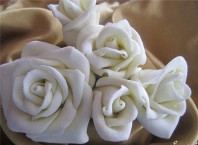 Возьмите тонкую шелковую материал, и вы узнаете, как сделать розу из шелка. Для сего необходимо вырезать четыре полукруга нужного поперечнику и три большим диаметром. Внутренний, нижний край любой лепестки взыскать, предварительно просрочить большими стежками. Верхние края обработать спичкой либо зажигалкой (только очень осторожно, чтобы они не потемнели).