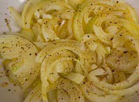 Сверху на нее положить лук, все посолить и поперчить. Кропотливо все перемешавши, необходимо накрыть емкость крышкой и уяснить настояться в течение пяти минут. Это время нужно для одевания печенью лукового сока. По желанию возможно добавить в блюдо и немного сметаны. Это устроит его более пикантным и нежным