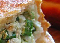 Нам потребуется: Тесто Ветчина Сыр Яйцо куриное Зеленоватый лук Растительный масло