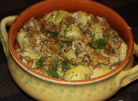 Три — хорошо луковицы нарезать кольцами. Залить горячей водой примерно 65 — 70 градусов, добавить девяти процентный обыденный уксус. Одна столовая ложка на 500 милилитрив воды. Специи за вкусом, хорошо охлаждать и перемешивать на протяжении полчаса. Например, возможный вариант добавки зелени к маринаду за желанием